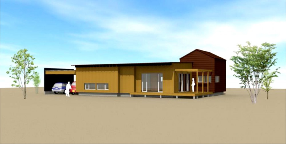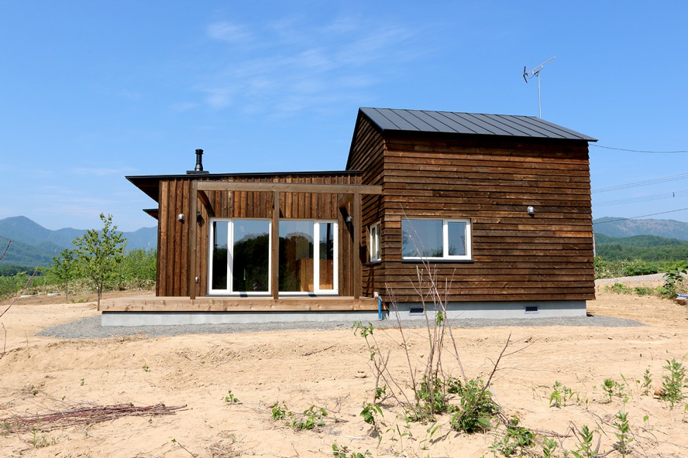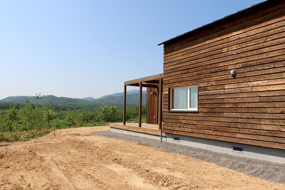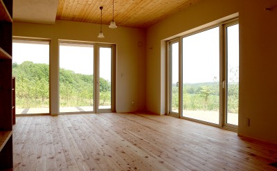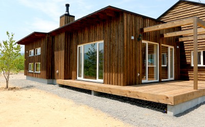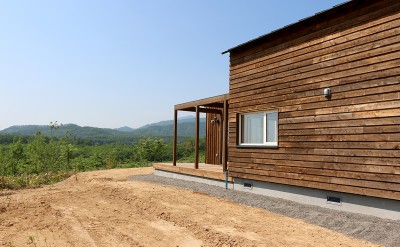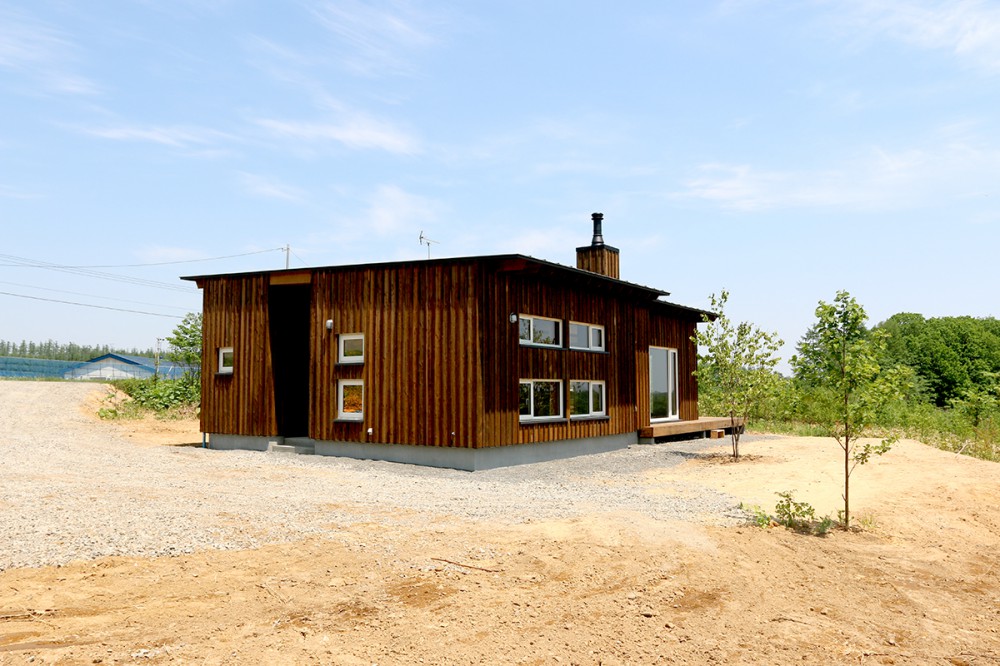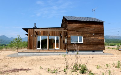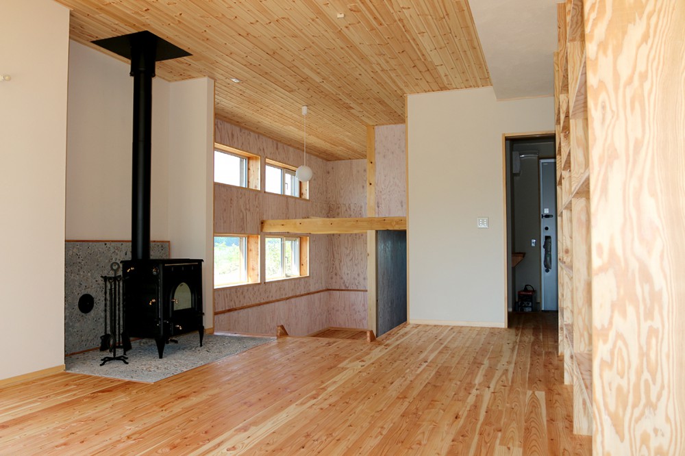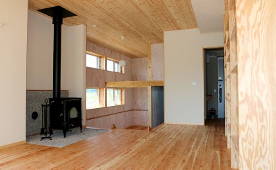 大草原の小さな家 関東から移住され自給自足を目指すご家族のための住宅です 無機質な素材を嫌われ 地に馴染むたたずまいを希望されました 超高断熱(壁グラスウール300mm)が薪ストーブ1台での全室暖房を可能にしています 小住宅ながらも広く住まう そんな住宅です