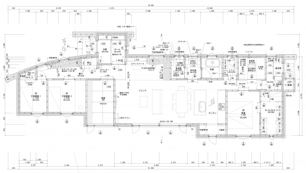 超高断熱(壁グラスウール300mm)と地中熱活用のパッシヴ換気をとりいれています